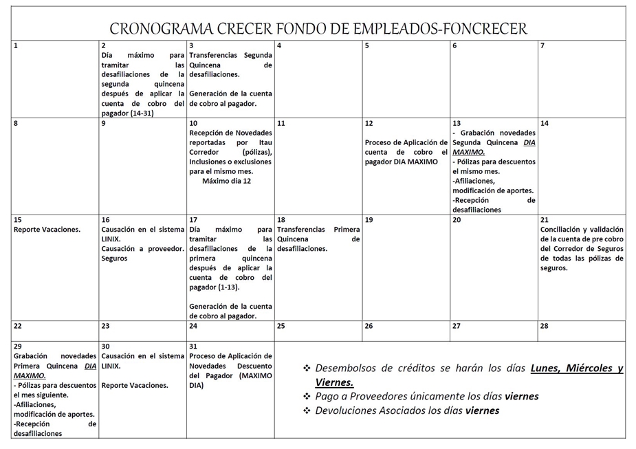 - Pago mensual: corresponde al valor vigente definido como aporte según sea su modalidad de pago de nómina (quincenal o mensual) para aportes sociales y ahorros permanente.