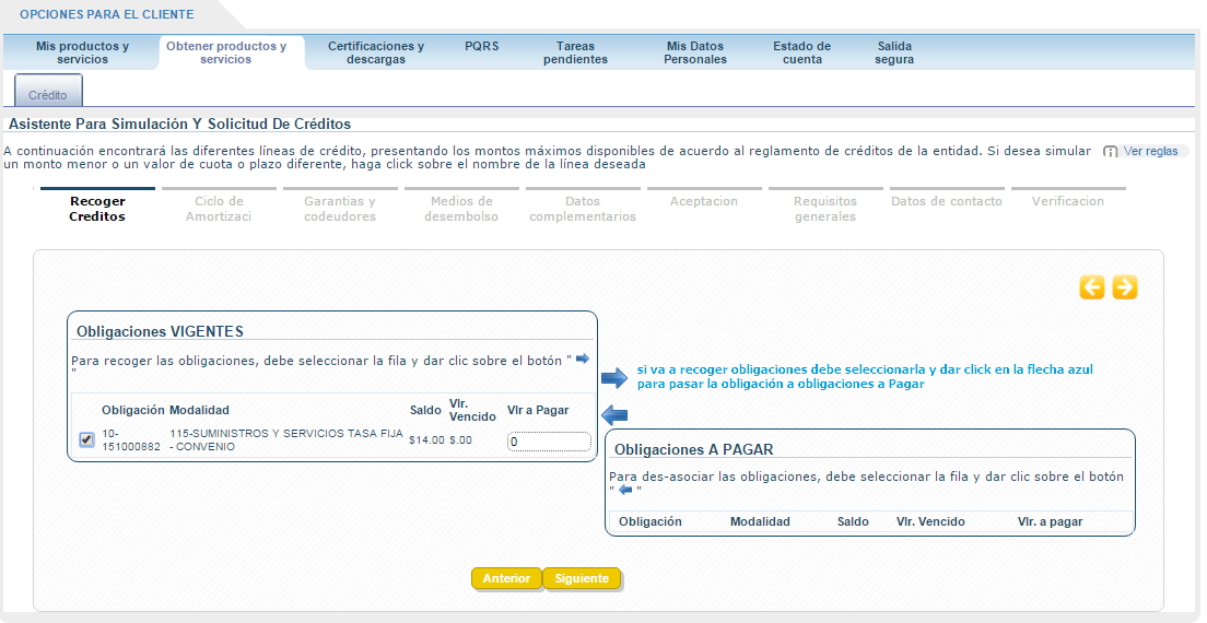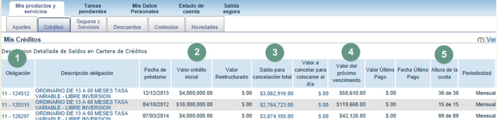 En las demás columnas usted encontrará información adicional del estado del crédito.