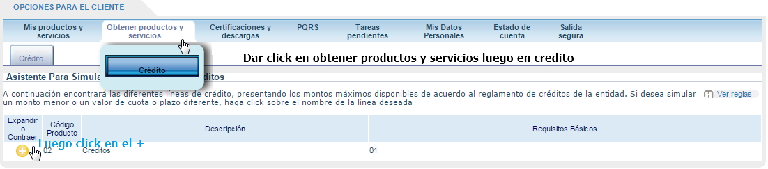 En la pestaña de Aportes usted podrá consultar sus productos de credito en la columna: