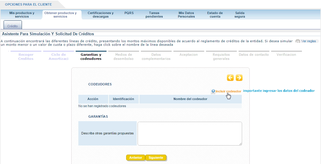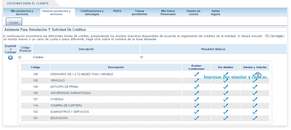 Siga los siguientes pasos para radicar la solicitud de crédito
