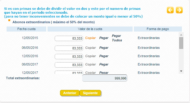 - Valor del próximo vencimiento: Valor correspondiente de la próxima cuota incluye el capital + intereses + seguro de vida.